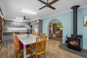 At the heart of the home is a lovely new kitchen, featuring modern appliances and plenty of storage, making meal prep a pleasure. Step outside and enjoy the impressive outdoor features, including an undercover BBQ area, garden shed, and a double Colorbond garage with workshop, ideal for hobbyists or extra storage.