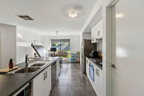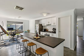 At the heart of the home, an expansive open-plan kitchen, dining, and living domain creates a central hub for entertaining and everyday life. The kitchen is beautifully appointed with a statement island bench, abundant cabinetry, extensive storage above and below, and a spacious walk-in pantry. An additional flexible area provides the perfect opportunity for a home office, reading retreat, or extended lounge space.